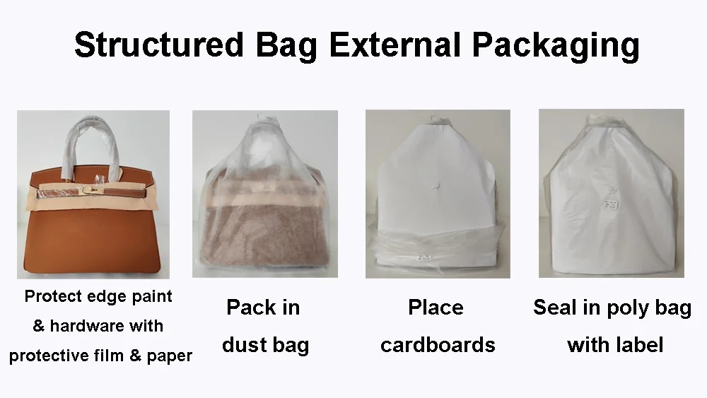 Handbag packaging consists of internal protection, external presentation, and shipping materials. Not every brand needs all options—flexibility is key.